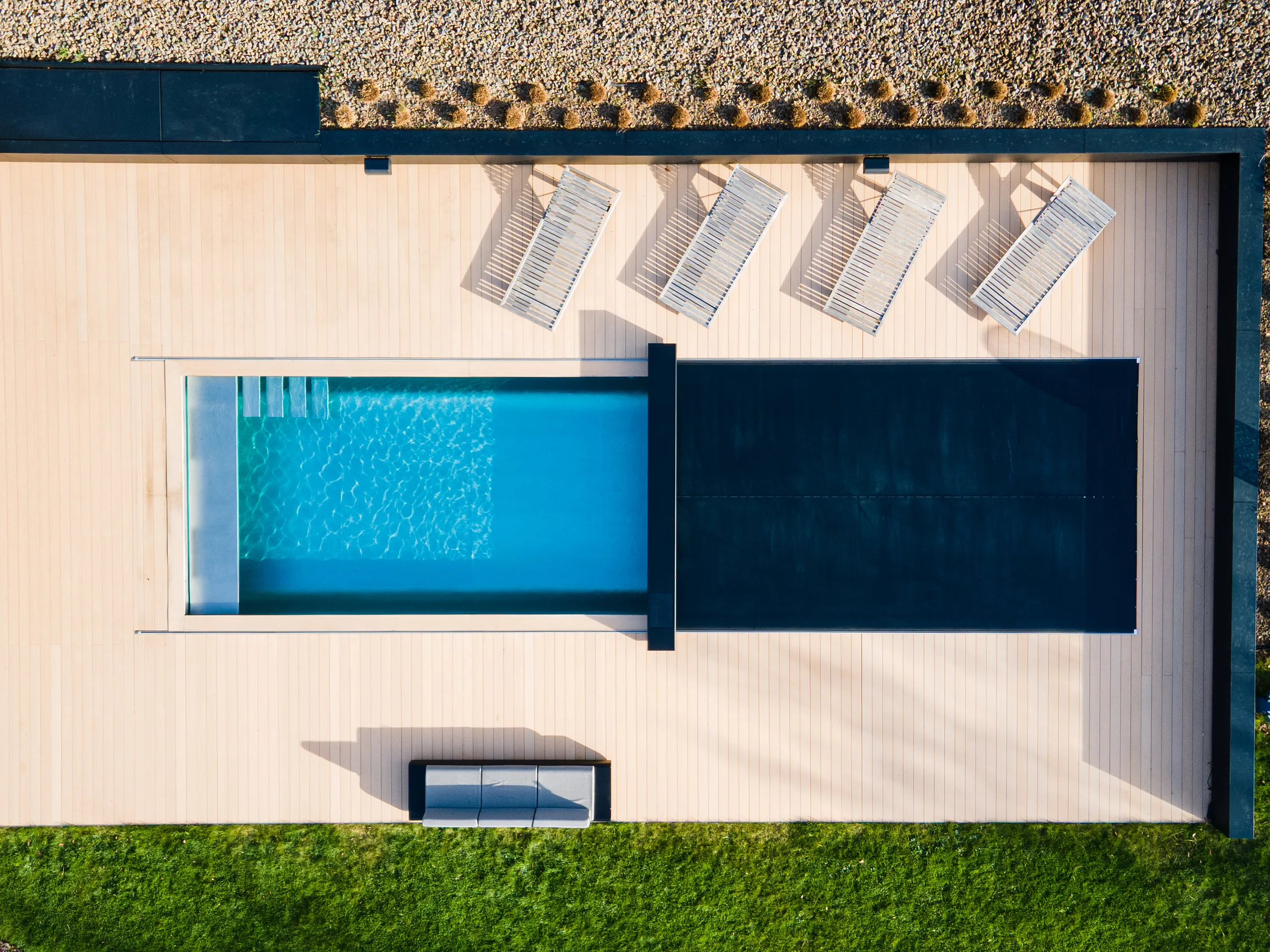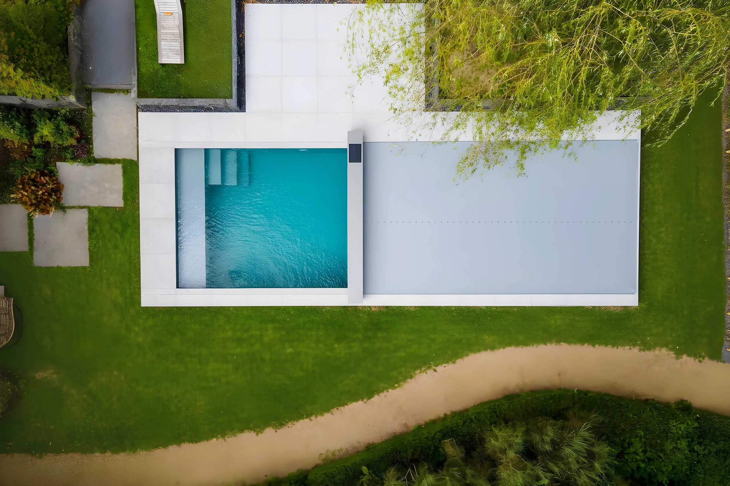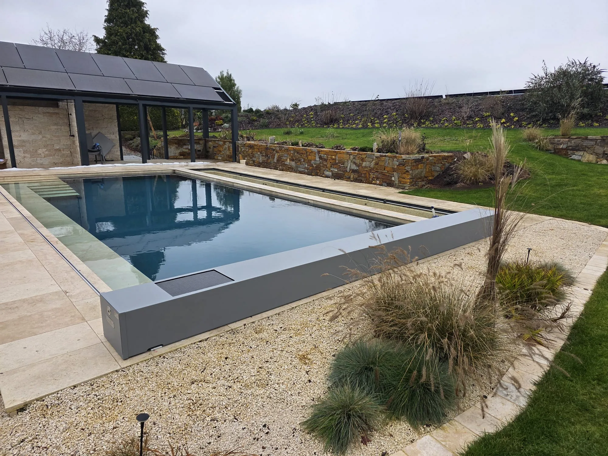 Da die Abdeckung das Eindringen von Licht reduziert, wird die Photosynthese gehemmt und damit das Algenwachstum deutlich eingeschränkt. Das trägt zusätzlich zu einem stabileren pH-Wert bei und verringert den Bedarf an Chemikalien für die Wasserpflege.