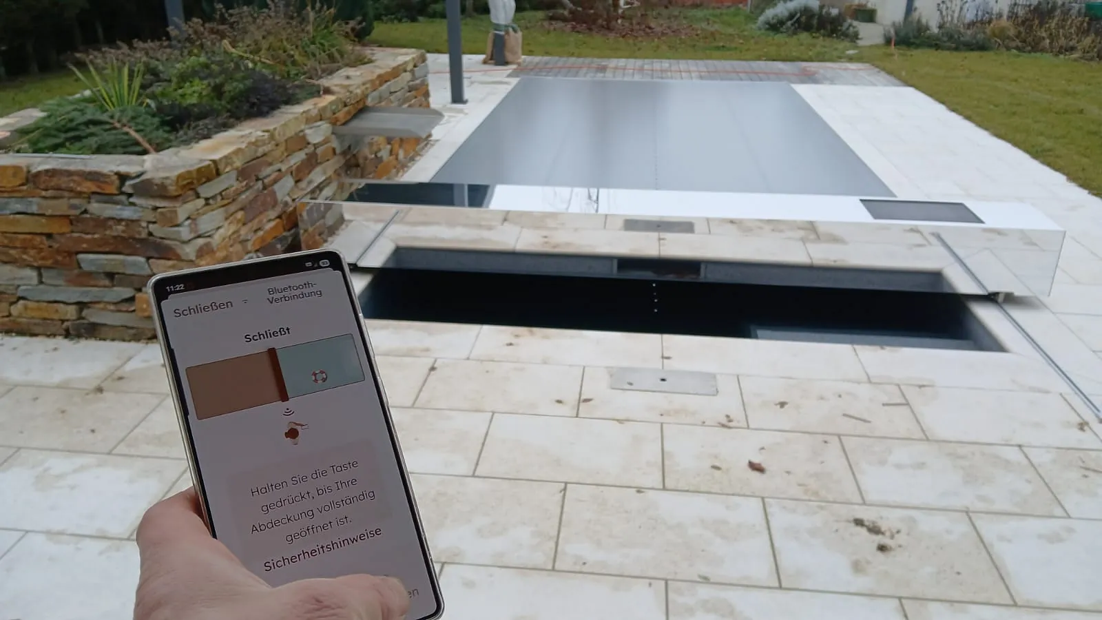 - Vollautomatisch: Hier übernimmt ein Solarpanel die Ladung der Akkus. Seit dem 18. September 2025 lässt sich das Coverseal zudem bequem per App über Bluetooth öffnen und schließen – aus Sicherheitsgründen ausschließlich in unmittelbarer Nähe.